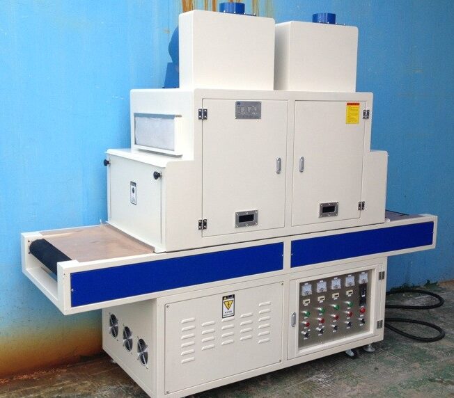 A UV curing oven is an industrial system that uses intense ultraviolet (UV) light to instantly cure or “dry” coatings, inks, adhesives, and resins. Unlike traditional thermal ovens that rely on heat evaporation, UV curing is a photochemical process. When UV light hits a specially formulated photoinitiator-rich material, it triggers a rapid polymerization reaction, transforming the liquid into a solid, cross-linked network in seconds.