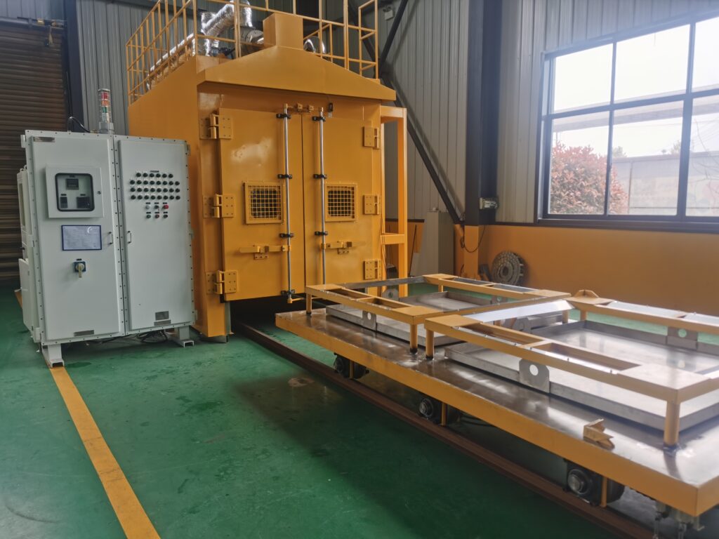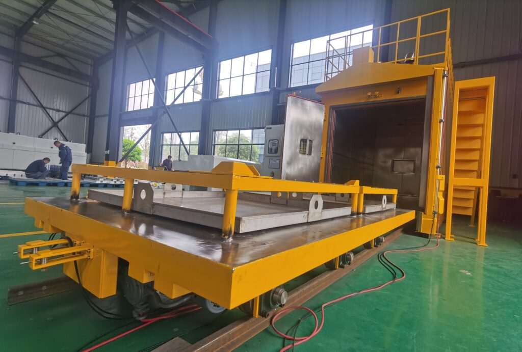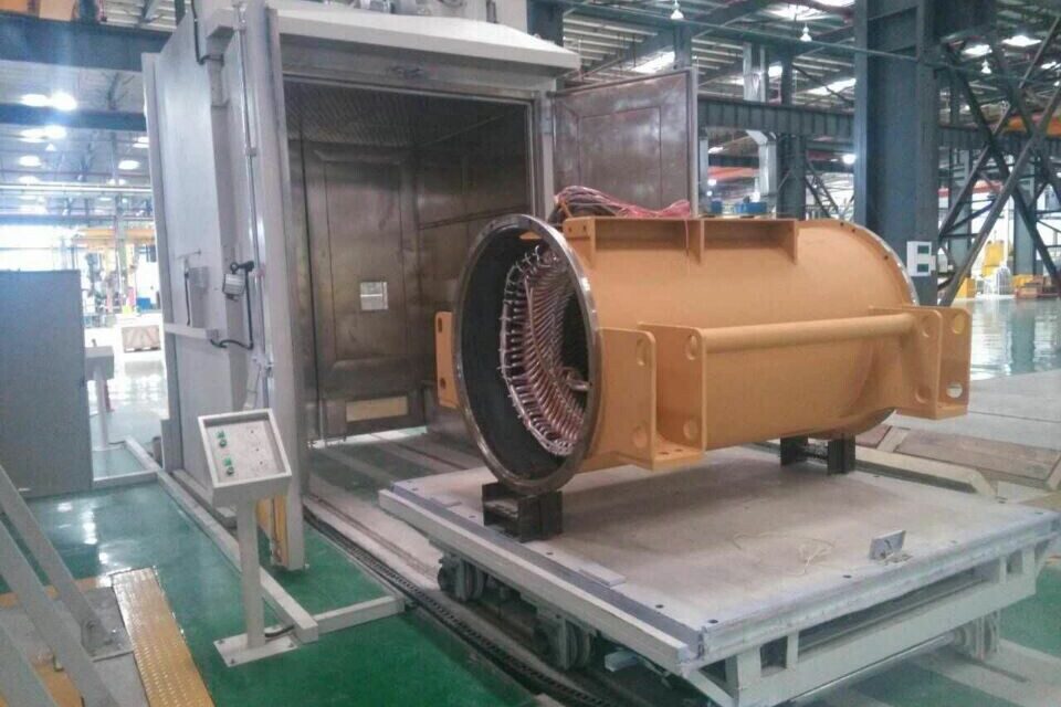 Key words: Continous conveyor oven for motor curing and drying, truck-in heating chamber, trolley-in hot air convection oven, motor curing.