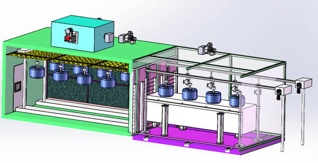 This one is a continuous oven for SEW motor curing drying. The pallet pass through the tunnel, and heated, and get cooled in the low layer and unload in the loading position.