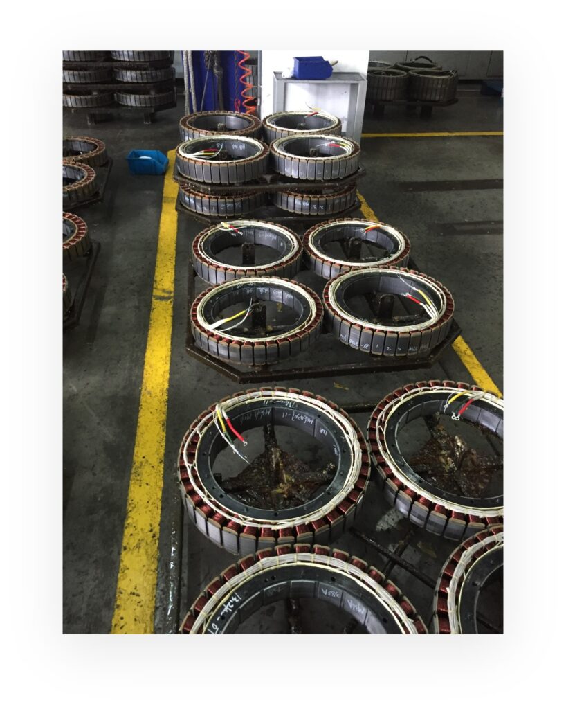 During Motor production, varnish/paint is necessary key process for Fill-reinforce-encapsulate. Etek customized different type of ovens (gas burning or electrical heating, overhead hangle or conveyor oven), for the manufacturing process of motor. Quite traditional one as following: